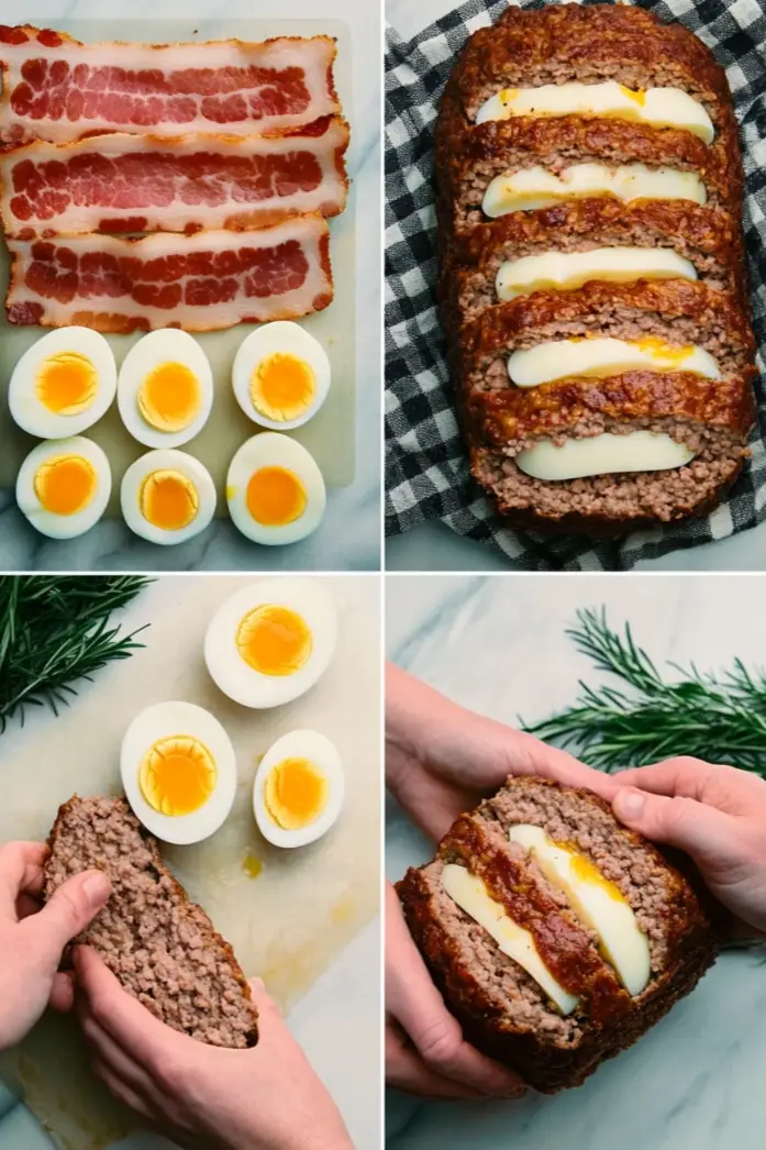 El pastel de carne es un plato clásico en muchas culturas, pero este pastel de carne relleno de huevo le da un giro delicioso que lo convierte en un platillo sorprendente y especial. Perfecto para reuniones familiares o cenas especiales, esta receta es una fusión de texturas y sabores con el toque suave de los huevos cocidos y el sabor ahumado del jamón en espiral. Este plato será una delicia para los paladares y, además, es una excelente fuente de proteínas. A continuación, te mostramos cómo preparar esta versión única de pastel de carne relleno de huevo.